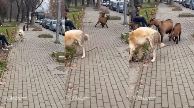 Кучето ги зема бегалки двете кози