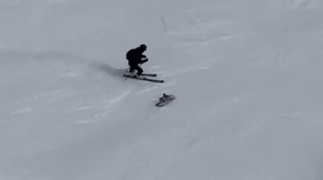 Куглана на снег: Избеган сноуборд ги коси скијачите еден по еден