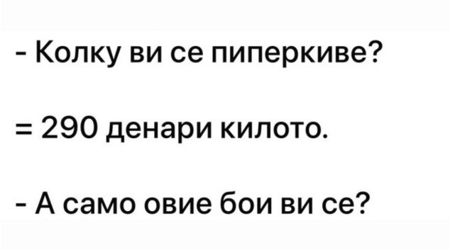 Пациент се жали кај психијатарот: – Докторе, во последно време не можам да јадам, не можам да спијам, не можам да работам ништо, постојано сум нервозен и вознемирен… Ме загрижува стабилноста на македонскиот денар… Психијатарот се насмевнува и му вели: – Нема никаква причина за загриженост. Само мора да сфатите дека стабилноста на македонскиот денар …