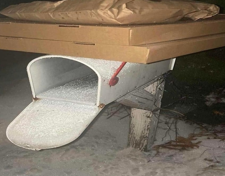 „Нарачката беше оставена на крајот од патеката на дожд и снег, избалансирана на поштенското сандаче.“