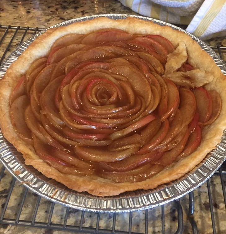 „По 3 неуспешни обиди, конечно направив пита со јаболка во форма на роза“.