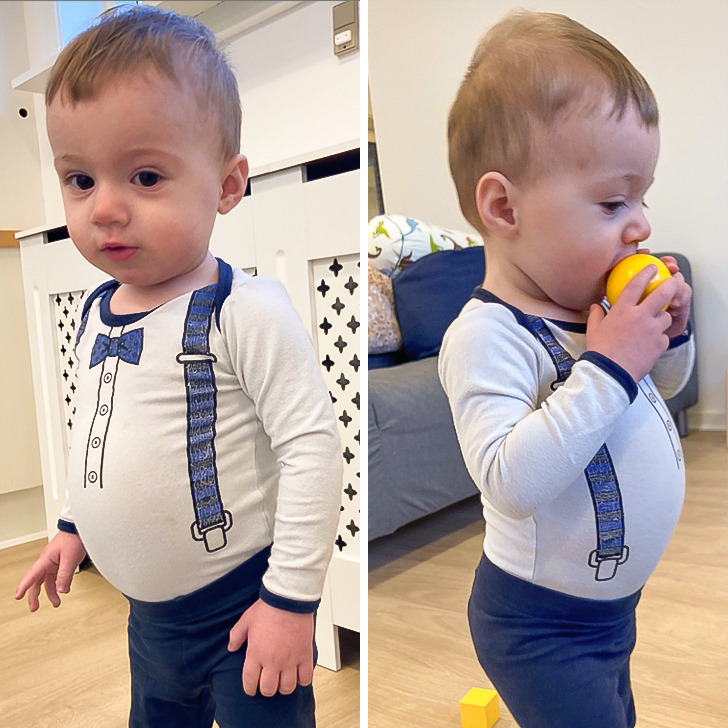 „Неговиот брат одби да појадува, па ова дете само изеде цела чинија овесна каша. Погледнете го само тој стомак!“