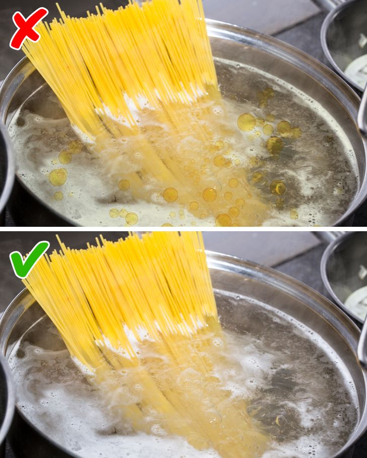 8. Додавање масло (секое масло) во водата во која ќе готвите тестенини.