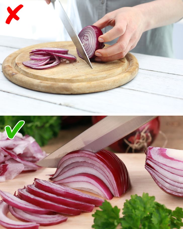 За среќа, постои решение за ова: исечете го со остар нож следејќи ја насоката на влакната на кромидот. Тоа се лентите кои се движат од коренот до стеблото. Идеално е да го исечете на ленти (julienne). Ова ќе гарантира помало производство на иритирачки аеросоли.