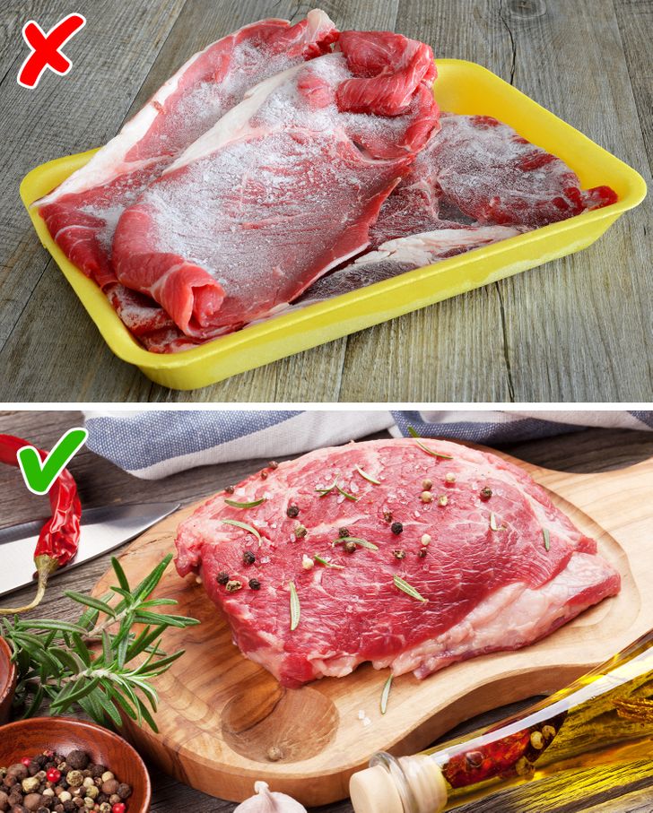 Многу е вообичаено да се видат луѓе како вадат парче месо од замрзнувачот и го ставаат на оган, во рерна или на скара. Ова е голема грешка, бидејќи месото, иако може да изгледа дека е варено однадвор, ќе биде сурово одвнатре. Препорачливо е да го извадите месото од замрзнувачот ноќта пред да сакате да го готвите. Можете да го ставите во фрижидер до 24 часа пред готвењето за да го има целото време што му е потребно за одмрзнување.