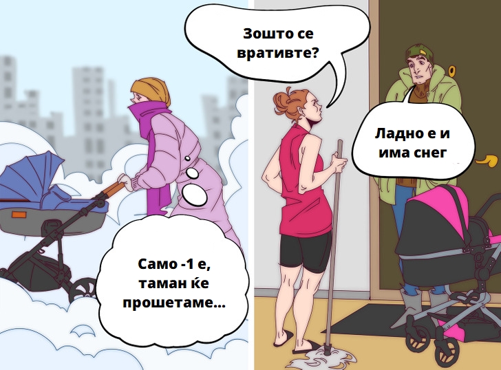 Многу мајки се сигурни дека можат да пешачат со своите деца во секое време. Секој ден излегуваат надвор без разлика на се. Не како татковците…