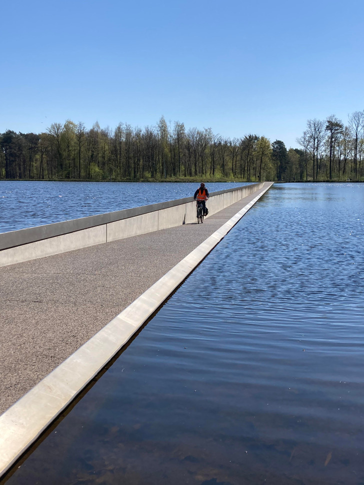 „Оваа патека во Белгија ви овозможува да пешачите или да возите велосипед низ езеро на ниво на очите“.