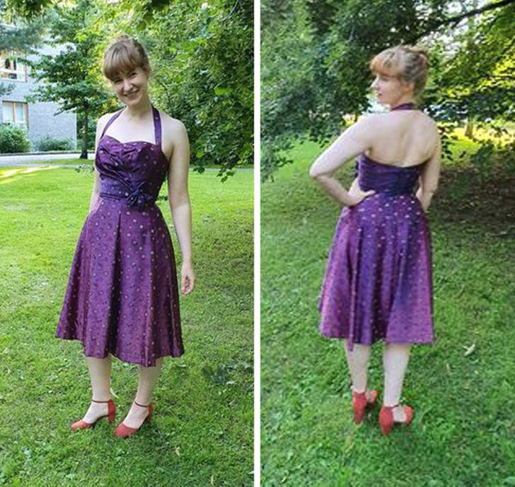 „Фустанот кој баба ми го дизајнирала во 1959 година за нејзината 20-годишнина од бракот. Го носев вчера на нејзиниот 100-ти роденден! “