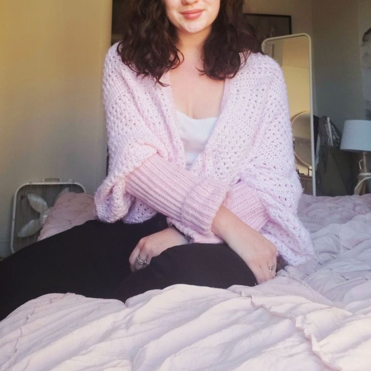 „Баба ми ми сплете кебенце кога бев бебе, а сега како возрасна, го преобразив тоа ќебе во кардиган.“