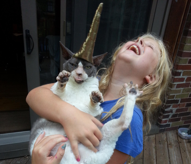 „Мојата ќерка и нашата пријателка ѝ сошија рог од еднорог на мачката додека јас дремев“.
