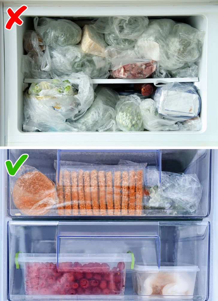 Преоптоварениот замрзнувач може да ги блокира отворите за вентилација и да го ограничи протокот на ладен воздух. Ова, пак, доведува до преоптоварување на кондензаторот, што може да предизвика негово изгорување. За да се спречи тоа да се случи, важно е не само разумно да се пристапи кон набавките и да не се дозволи вишок, туку и да се организира соодветен систем за складирање, во кој производите нема да бидат натрупани на куп и внимателно ќе го заземаат просторот што им е доделен. .