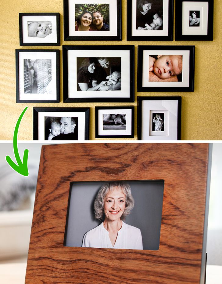 Создавање на посебно место за сите фотографии на вашето семејство или пријатели можеби не е добра идеја бидејќи овој визуелен неред може да го стимулира вашиот мозок. Како резултат, галеријата со фотографии може да го наруши вашиот фокус, да го отежне опуштањето, па дури и да доведе до стрес и анксиозност. Во овој случај, подобро е да ставите фотографии во посебни рамки и да ги поставите на различни места околу вашиот дом.