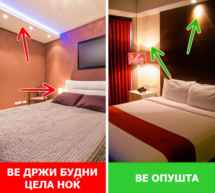ЛЕД-светлата не треба да бидат инсталирани во вашата спална соба, бидејќи тие зрачат со значителна количина на сина светлина. Ова може да го наруши вашиот сон и да предизвика вонземиреност, што може да ве држи будни цела ноќ, што е поврзано со зголемена анксиозност и многу повеќе психолошки и физички проблеми. Подобро е да се изберат опции што произведуваат топла затемнета светлина.