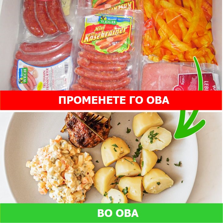 Колбас, салама, конзервирано месо, длабоко пржена храна, рафинирани житарици, бонбони, колачи и млечни производи со многу маснотии се сметаат за преработена храна. Тие не само што можат да предизвикаат разни физички проблеми, туку можат да влијаат и на нашата психичка состојба во форма на анксиозност и депресија. Затоа, ако можете, обидете се да преминете на поздрава алтернатива што сами сте ја приготвиле.