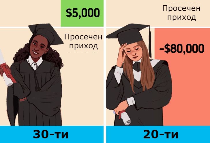 Започнувата да ја градите вашата кариера во вашите 20-ти години, па грижата за бебе може да биде поскапа отколку ако сте финансиски постабилни во 30-тите години. Според данска студија, мајките кои родиле  прв пат на возраст од 31-34 години со факултетска диплома би заработиле околу 5000 долари повеќе од просечниот приход во текот на нивниот живот. Оние што имале бебиња пред да наполнат 25 години, од друга страна, би заработиле околу 80 000 долари помалку.