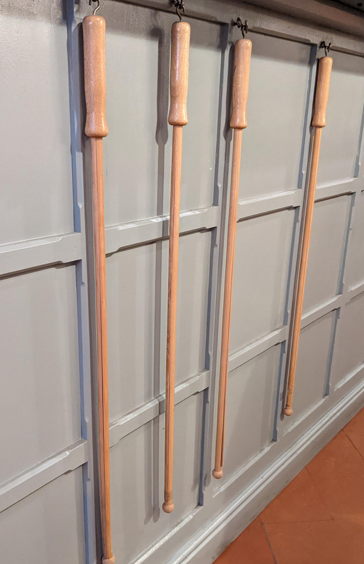 „Држачи на весници. Стапчињата имаат расцеп и хартиите минуваат низ таму. Обично големина за весници со широк лист“