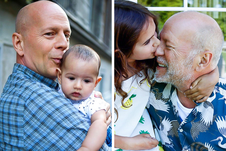 Брус Вилис, познат по своите наградувани изведби, има три ќерки од првиот брак со актерката Деми Мур. До моментот кога ја дочека својата четврта ќерка на 57 години, другите ќерки беа речиси целосно пораснати. Тој изјави: „Јас сум посреќен отколку што некогаш сум бил. Менувам пелени како шампион. Кога не работам, деновите ми се посветуваат на жените во мојот живот“.