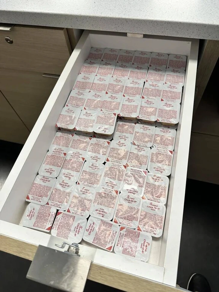 „Имам колега кој секогаш бара 2 сосови и секогаш користи само еден. Нека е благословен“.