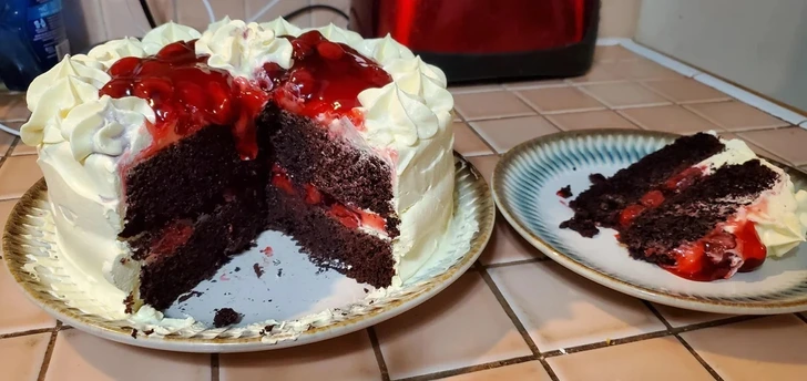Измешајте ги сувите состојки и постепено додајте ги течните додека не добиете мазна смеса. Печете на 175°C додека чепкалката не излезе сува од центарот на тортата.