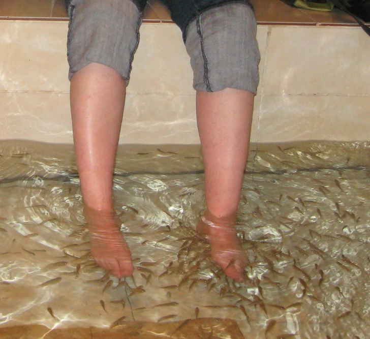 Некои салони ја нудат оваа егзотична процедура како алтернатива на конвенционалниот пилинг на стапалата. За време на сесијата, рибите нежно ја штипкаат кожата, нежно лупејќи ги мртвите клетки од кожата и калусите. Сепак, оваа постапка не е толку безбедна како што мислат многу луѓе. Вработените во салонот едноставно не можат правилно да го стерилизираат базенот помеѓу клиентите. И рибата може самата да шири инфекции.