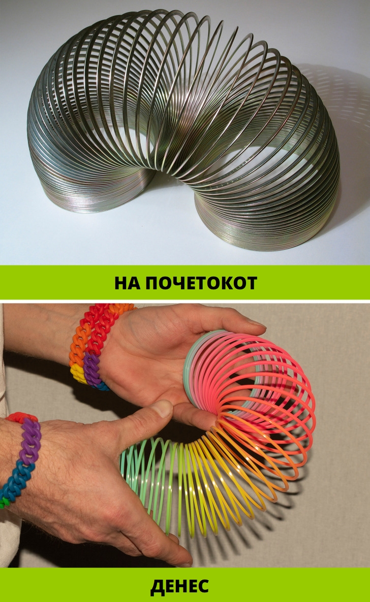 Во 1943 година, машинскиот инженер Ричард Џејмс развиваше пружински систем за поддршка и стабилизирање на чувствителни инструменти на бродови во немирно море. Еден ден, Џејмс случајно испуштил еден од федерите и бил изненаден кога открил дека почнал да „шета“. Научникот бил заинтересиран за таков феномен и мислел дека од ова може да излезе возбудлива играчка.