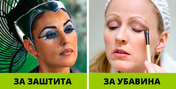 Првично, сенката за очи се користеше првенствено за медицински цели. Старите Египќани користеле бои на база на олово, јаглен и други минерали за да ја заштитат кожата на очните капаци и очите од жешкото сонце, како и од инфекции на очите и бактерии. Сега овој козметички производ се користи исклучиво за естетски цели.