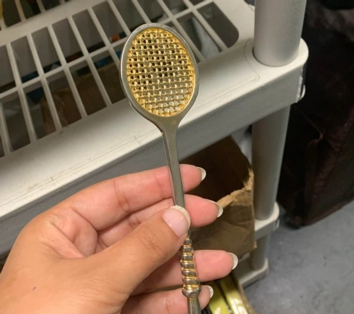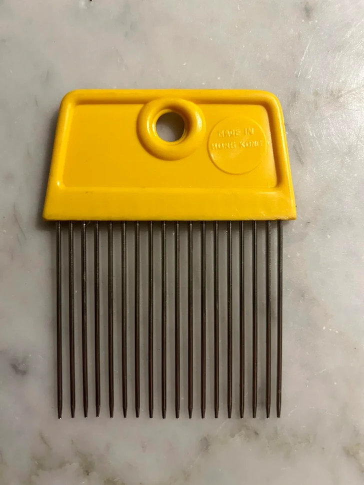 9. Мал жолт артикл налик на чешел со долги метални огради е пронајден во кујнска фиока