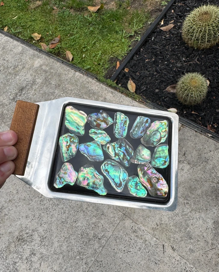 Одговор: Порано се продаваа во Нов Зеланд како туристички сувенири. Абалонот е симбол во Нов Зеланд и се нарекува пауа. Малиот послужавник беше за служење грицки, на забави.