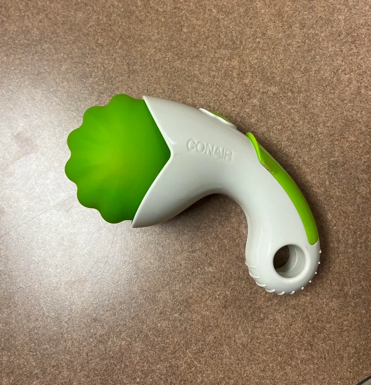 7. Рачен електронски уред Conair. Не се тркала и е многу флексибилен. Бела пластична рачка, гумен врв.