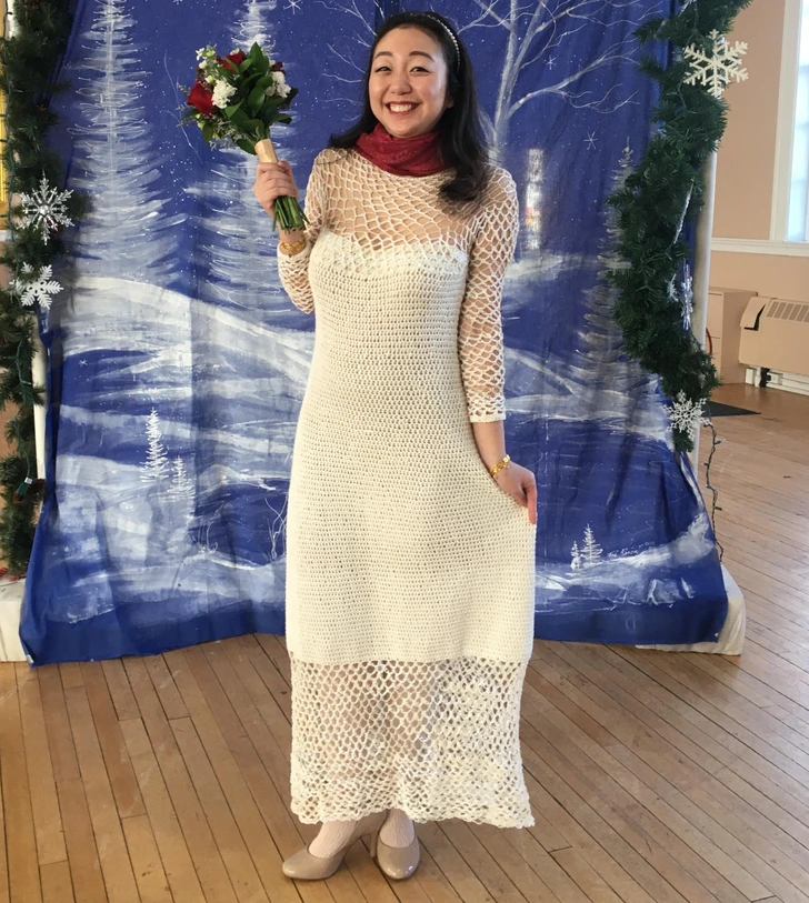 Овој избор вклучува не само плетени, туку и сошиени фустани. Она што ги спојува е тоа што се е направено од рацете на невестите.