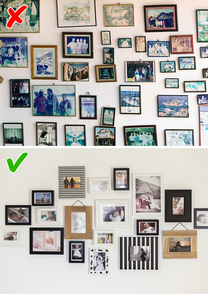 Ако сликите се расфрлани на сите страни низ собата се губи чувството за хармонија.