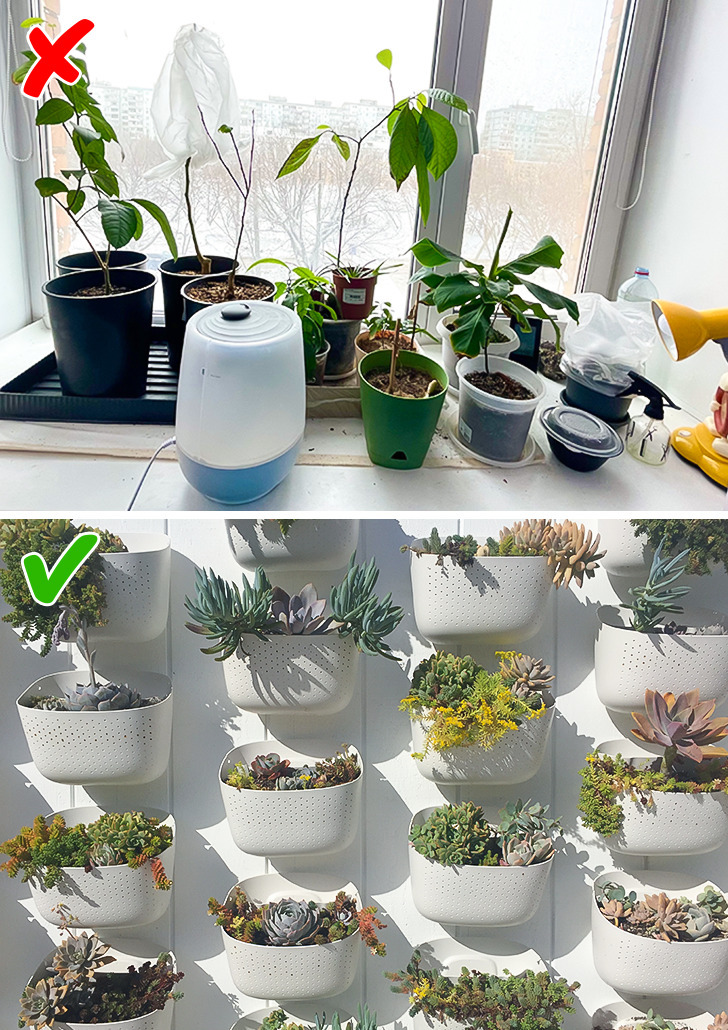 Многумина се навикнати на саксии на прозорските прагови. Има многу светлина, а нема потреба да се одвои посебно место во станот за жардињерите. Но, ова решение има голем број на недостатоци. На пример, растенијата меѓусебно го блокираат изворот на природна светлина, го спречуваат отворањето на прозорците. Покрај тоа, прозорската градина не е секогаш вкусно украсена и чувана во ред.