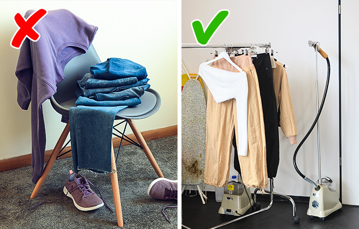 Доколку не можете да развиете навика уредно да виткате или закачувате облека во плакарот, на местото на „столчето-плакар“ ставете отворен гардеробер.