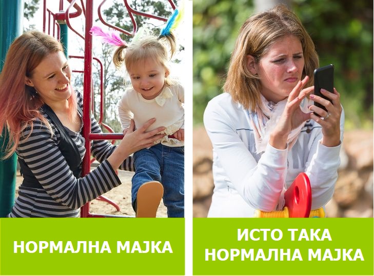 „Луѓето веруваат дека добрата мајка треба да го гледа своето дете во паркот, наместо да го проверува нејзиниот телефон. Јас не сум совршена и честопати ми го одвлекува вниманието мојот телефон додека мојот син си игра со неговите пријатели. Претпоставувам дека треба да се срамам од ова, но не се срамам. Прво, на 5-годишно дете не му треба толку внимание како бебе, и второ, модерната мајка има многу важни причини да биде на нејзиниот телефон.