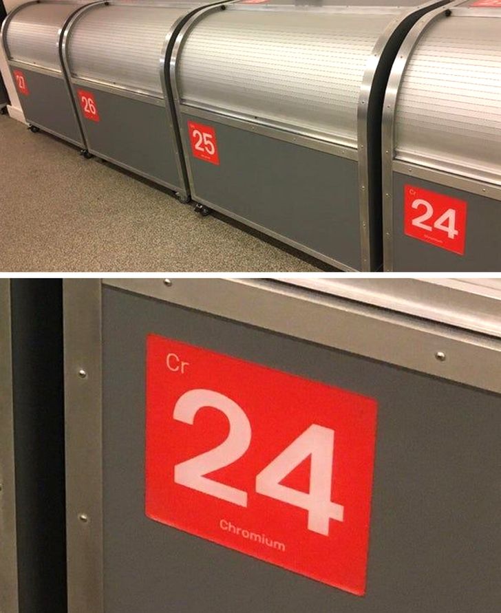 „Броевите на контејнерите во Музејот на науката се украсени како атомски броеви на елементите на периодичниот систем“