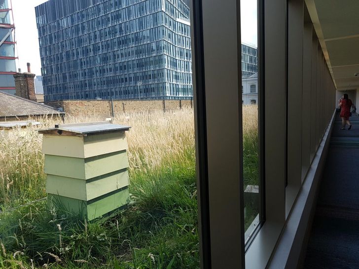 „Пчелите се одгледуваат на покривот на еден хотел во централен Лондон.“