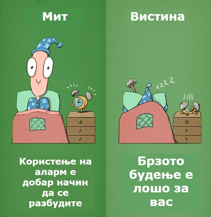 10. Истражувањето спроведено во Јапонија покажа дека се користи будилник не само што ги вознемирува нашиот биолошки ритам, туку исто така може да предизвика штета на срцето. Крвниот притисок на една личност се зголемува кога ќе ги разбуди аларм, ставајќи ги за момент во состојба на „подготвен за борба“, ова никогаш не е добро за организмот.