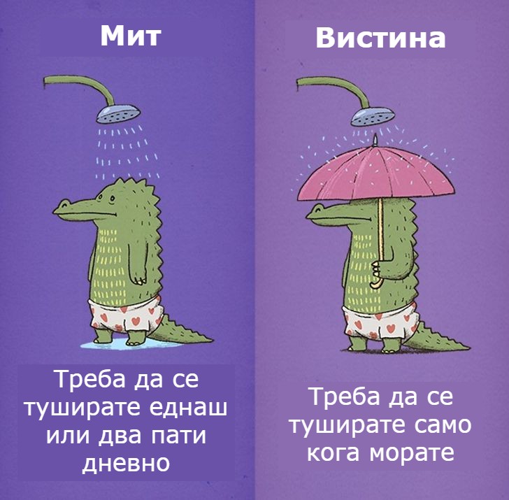 Ако сте од оние кои сакаат да туширате секој ден, дадете предност на ладна вода и не користете секогаш производи за чистење. Тие се неопходни само во оние области каде што се потите.