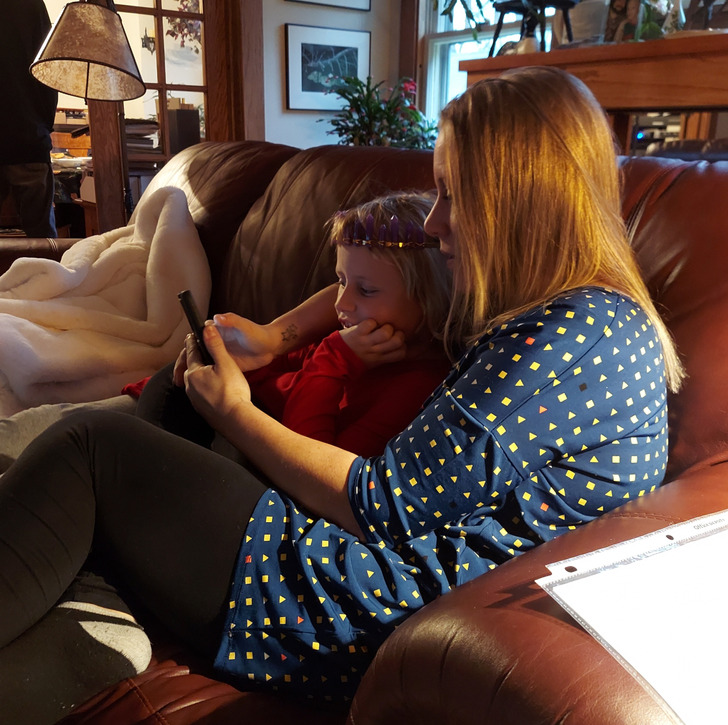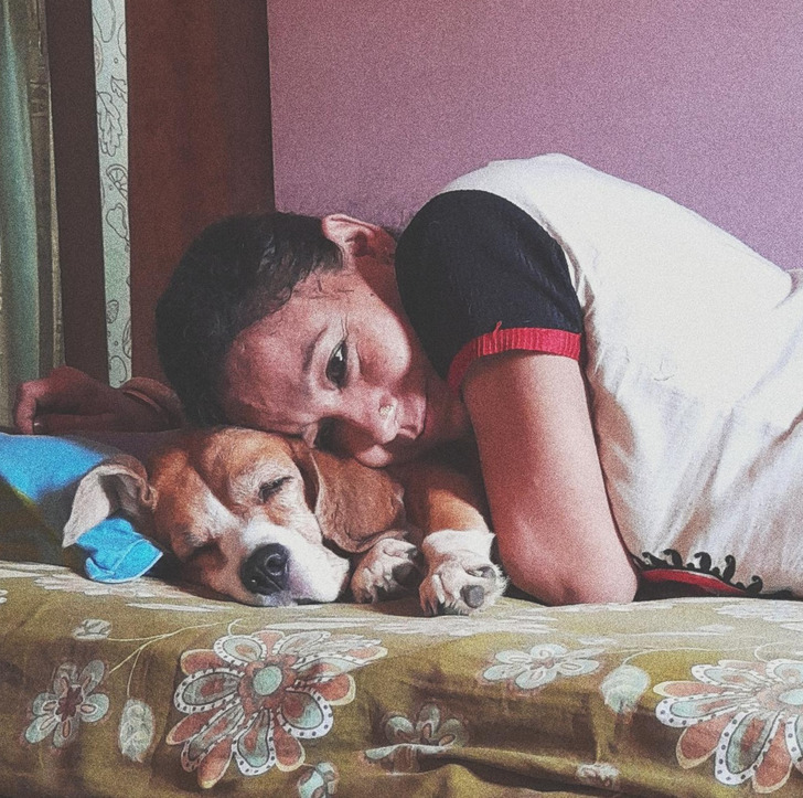 2. „Оваа слика што ја направив од мама како се гушка со биглот“