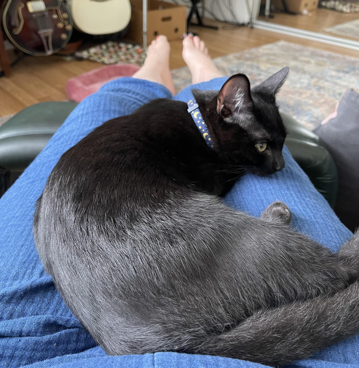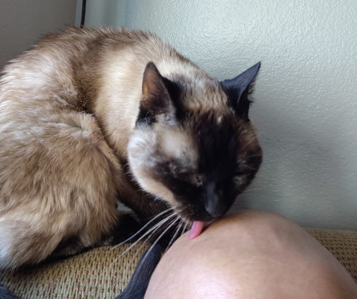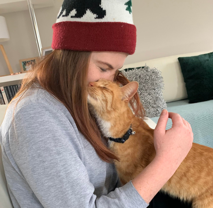 5. „Спомени! Кога поминував низ хемотерапија, мојата тогаш 18-годишна мачка редовно ја негуваше мојата ќелава глава“.
