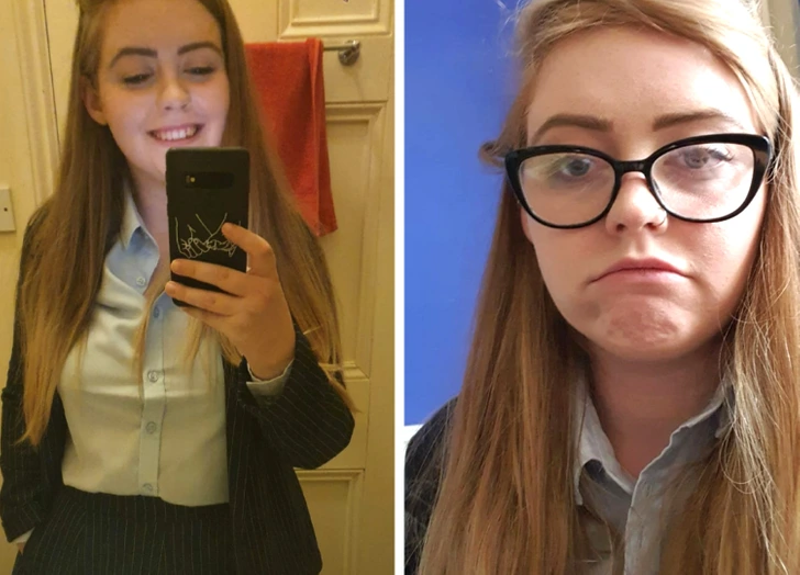 „Мојата девојка пред и по нејзиниот прв ден како учителка“.