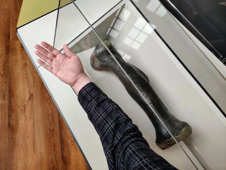 Споредба на големината на метатарзалната големина на Т-рекс со подлактицата на човек – Метатарзалот е коска на стапалото.