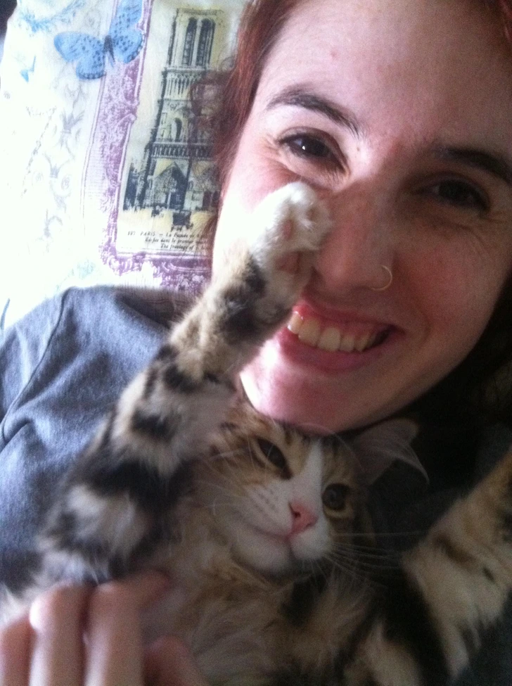 По разводот, живеев сама. Еден мој пријател ми подари маче. Еднаш, навечер, готвев пилешко и заспав. Се разбудив од мојата мачка која седеше до моето лице. Ја избркав, иритирана, а потоа забележав дека просторијата е исполнета со чад што доаѓа од кујната. Таа буквално ми го спаси животот.