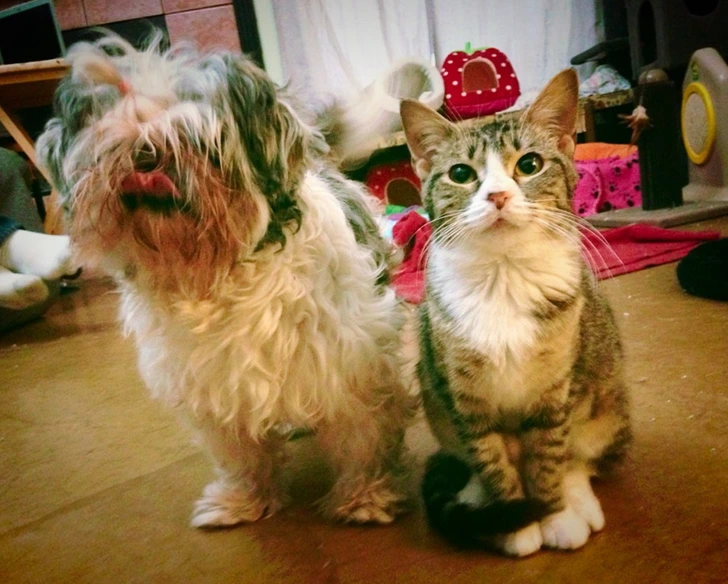 „Едно од нашите кучиња е старо и слепо, а мачката гледа. Тие се неразделни“.