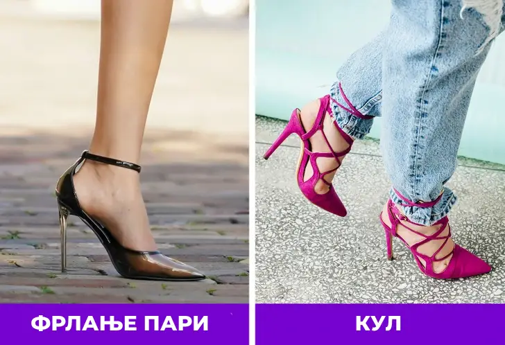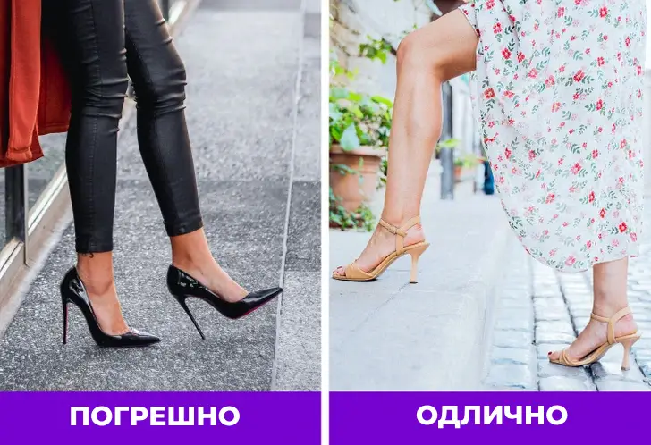 Вреди да се погледне внимателно на потпетиците одзади – секое отстапување на потпетиците од аголот од 90 укажува на неисправен производ. Покрај тоа, овие чевли се едноставно опасни за носење – тоа може да доведе до повреди на глуждот.