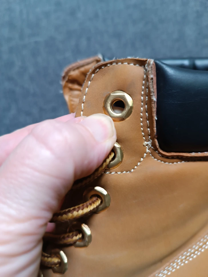 Сите метални или пластични делови на чевелот (особено оние што доаѓаат во контакт со кожата) треба да бидат цврсто прицврстени. Така, вреди внимателно да ги испитате дупчињата за врвки. Иако овој дефект е доста редок, може да доведе до повреда на носителот.