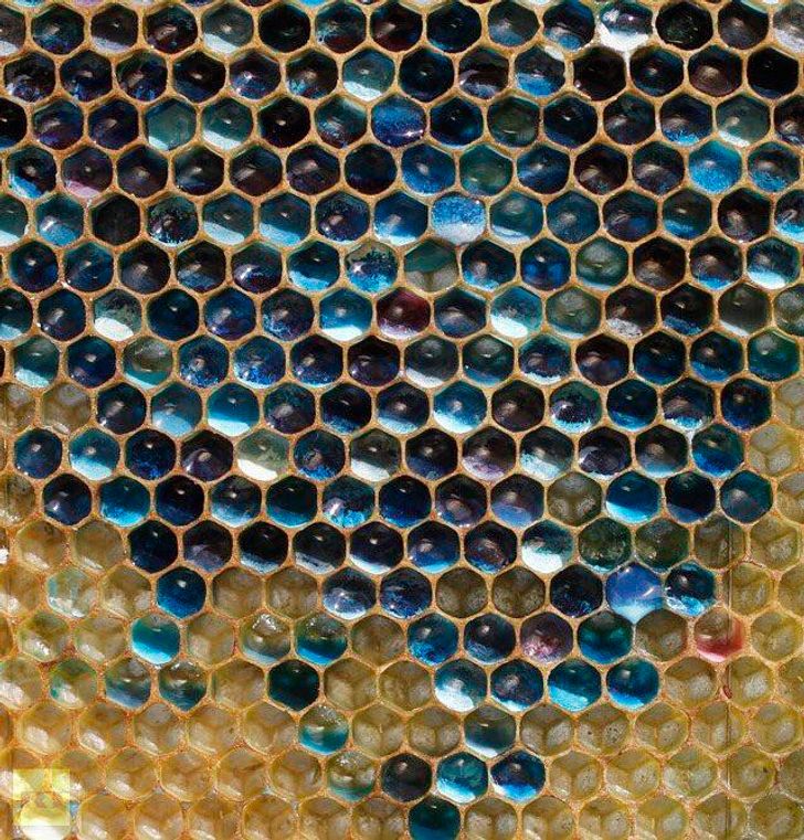 4. Француските пчели создале син и зелен мед откако упаднале во фабрика на М&М. Еве едно од саќе.