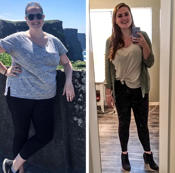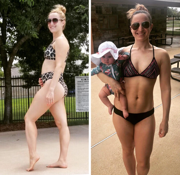 „На левата страна: 5 месеци бремена. Десно: 5 месеци по породувањето“