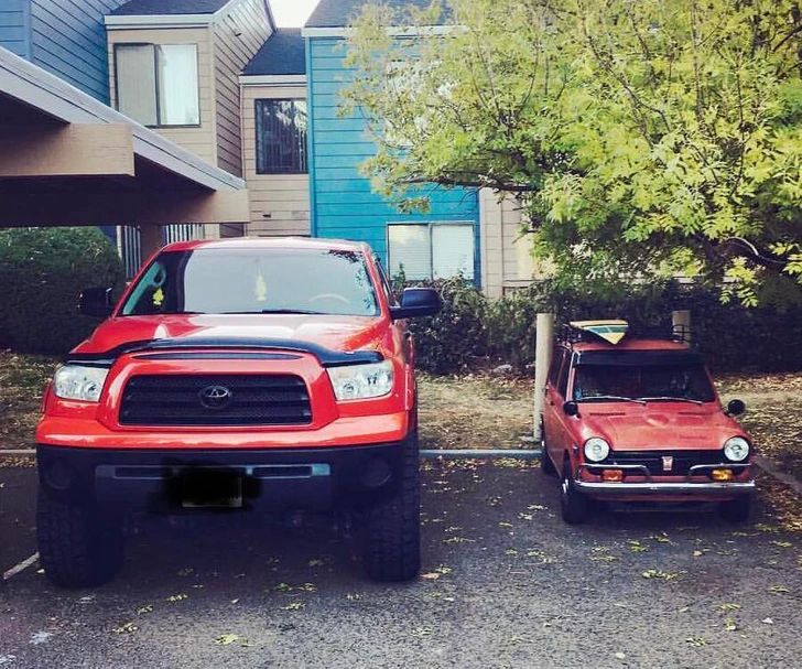 „Разликата во големината помеѓу мојата Хонда од 1970 година и обичен пикап камион“