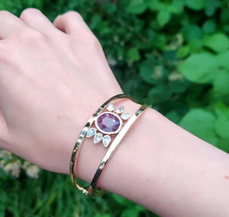 „Дијамант и рубин нараквица од жолто злато од 14 карати што ја изработив користејќи го стариот накит!“